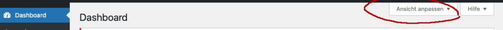 Startseite: Hier werden je nach Ansichtseinstellungen und installierten Plugins verschiedene Informationen angezeigt – z.B. Informationen über WordPress, Statistik, Zustand der Website usw.